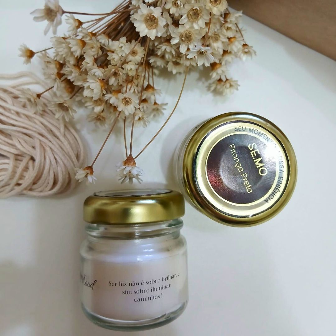 Vela em potinho de vidro 30g – medindo 5x6cm.
